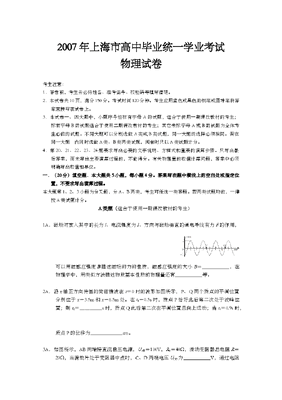 2007年上海市高中毕业统一学业考试物理试卷(原卷版).doc