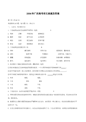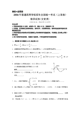2004年上海高考数学真题(文科)试卷(word版).doc