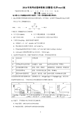 2014年安徽高考化学试卷及答案word.doc