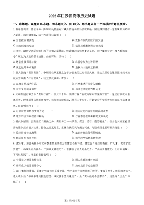 精品解析:2022年新高考江苏历史高考真题(原卷版).docx