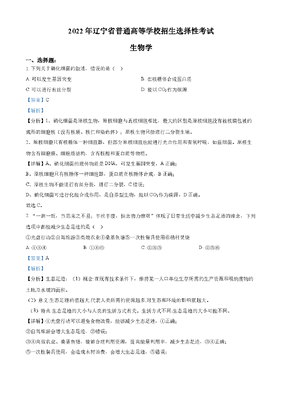 精品解析:2022年新教材辽宁生物高考真题(解析版).docx