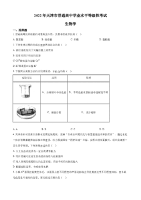 精品解析:2022年新教材天津生物高考试题(原卷版).docx
