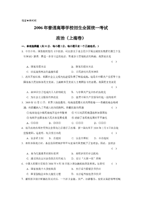 2006年上海市高中毕业统一学业考试政治试卷(答案版).doc
