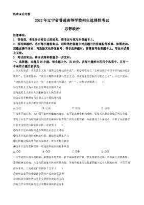 精品解析:2022年新高考辽宁政治高考真题(原卷版).docx