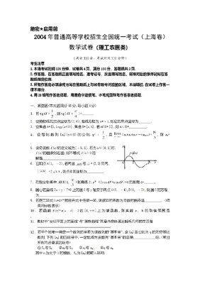2004年上海高考数学真题(理科)试卷(word版).doc