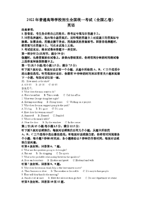 精品解析:2022年全国乙卷英语高考真题(原卷版).docx