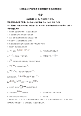 精品解析:2022年辽宁省高考真题化学试题(原卷版).docx