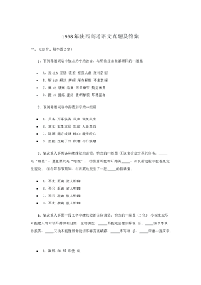 1998年陕西高考语文真题及答案.doc