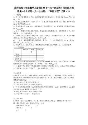 北师大版七年级数学上册第5章《一元一次方程》同步练习及答案—5.5应用一元一次方程:“希望工程”义演(2).doc