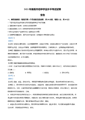 精品解析:湖南省衡阳市2021年中考生物试题(解析版).doc
