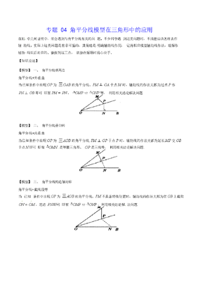 初中数学专题04 角平分线模型在三角形中的应用(教师版).docx