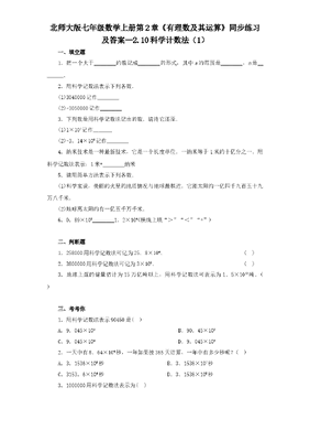 北师大版七年级数学上册第2章《有理数及其运算》同步练习及答案—2.10科学计数法(1).doc