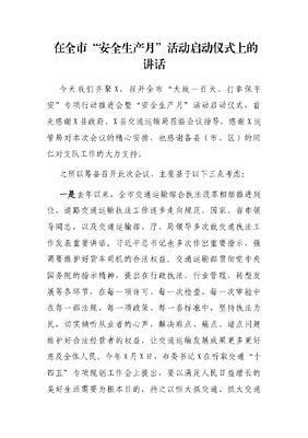 在全市“安全生产月”活动启动仪式上的讲话.docx