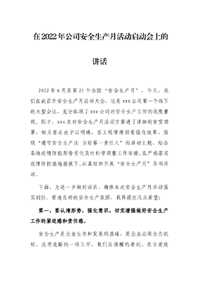 在2022年公司安全生产月活动启动会上的讲话.docx