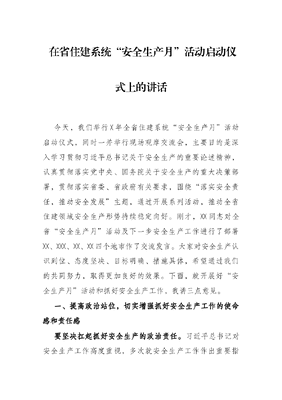 在省住建系统“安全生产月”活动启动仪式上的讲话.docx
