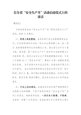 在全省“安全生产月”活动启动仪式上的讲话.docx