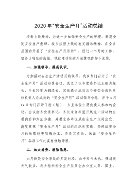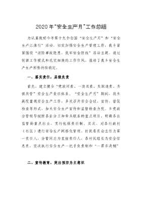 2020年全国“安全生产月”活动开展情况的报告.docx