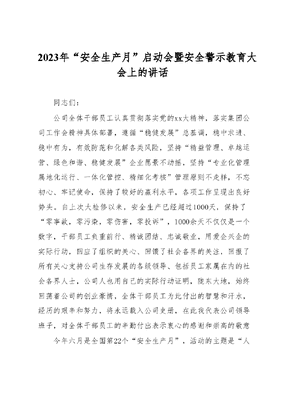 2023年“安全生产月”启动会暨安全警示教育大会上的讲话.docx