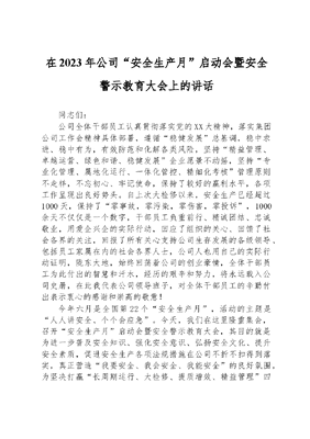 在2023年公司“安全生产月”启动会暨安全警示教育大会上的讲话.docx