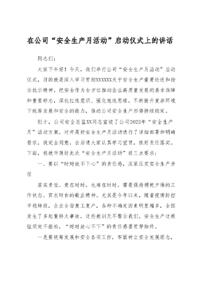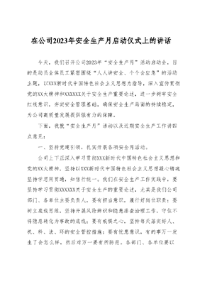 在公司2023年安全生产月启动仪式上的讲话.docx