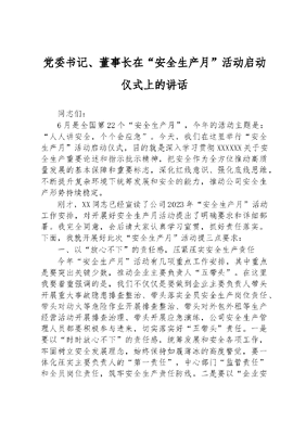 党委书记、董事长在“安全生产月”活动启动仪式上的讲话.docx