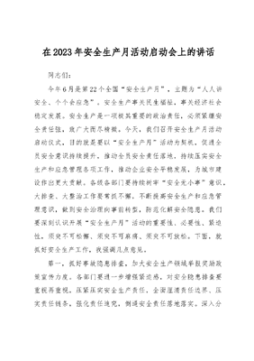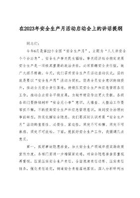 在2023年安全生产月活动启动会上的讲话提纲.docx