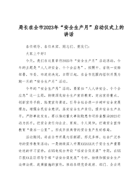 局长在全市2023年“安全生产月”启动仪式上的讲话.docx