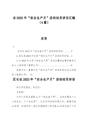 (4篇)在2023年“安全生产月”活动动员讲话汇编.docx