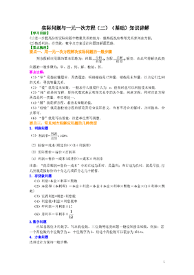 初中7年级(上册)实际问题与一元一次方程(二)(基础)知识讲解.doc
