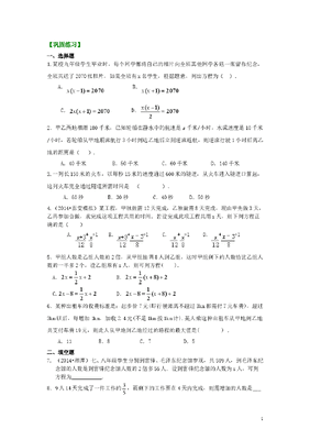 初中7年级(上册)实际问题与一元一次方程(一)(提高)巩固练习.doc