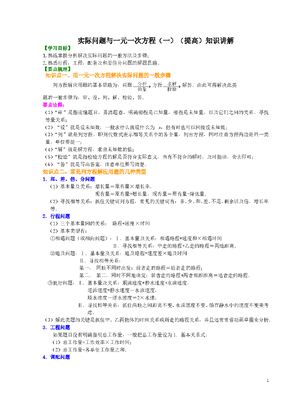 初中7年级(上册)实际问题与一元一次方程(一)(提高)知识讲解.doc