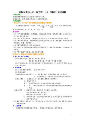 初中7年级(上册)实际问题与一元一次方程(一)(基础)知识讲解.doc
