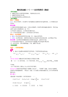 初中7年级(上册)整式的加减(一)——合并同类项(基础)知识讲解.doc