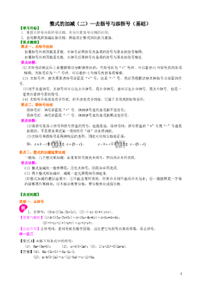 初中7年级(上册)整式的加减(二)—去括号与添括号(基础)知识讲解.doc