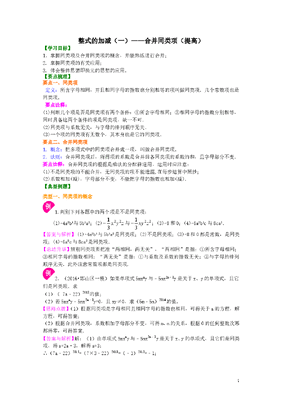 初中7年级(上册)整式的加减(一)——合并同类项(提高)知识讲解.doc