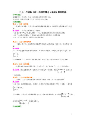 初中7年级(下册)二元一次方程组的相关概念(基础)知识讲解.doc