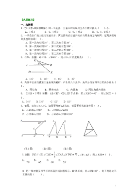 初中7年级(下册)《平行线与相交线》全章复习与巩固(基础)巩固练习.doc