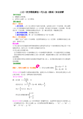 初中7年级(下册)二元一次方程组解法(一)--代入法(提高)知识讲解.doc