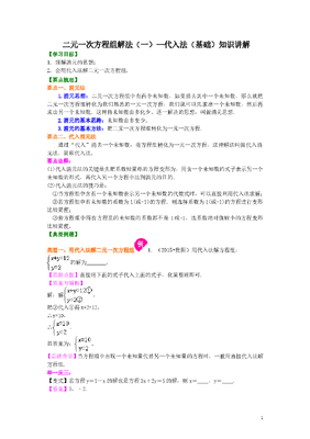 初中7年级(下册)二元一次方程组解法(一)--代入法(基础)知识讲解.doc
