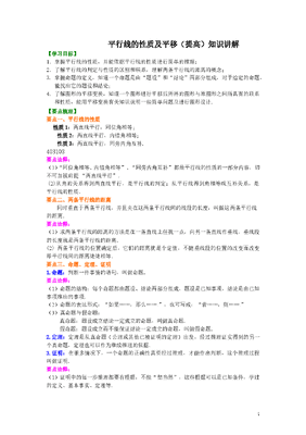 初中7年级(下册)平行线的性质及平移(提高)知识讲解.doc