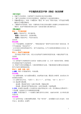 初中7年级(下册)平行线的性质及平移(基础)知识讲解.doc