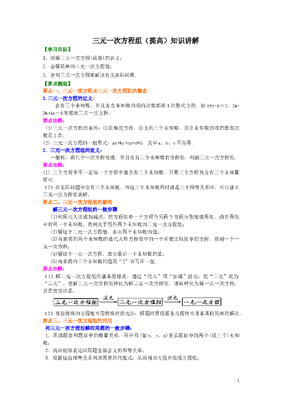 初中7年级(下册)三元一次方程组(提高)知识讲解.doc