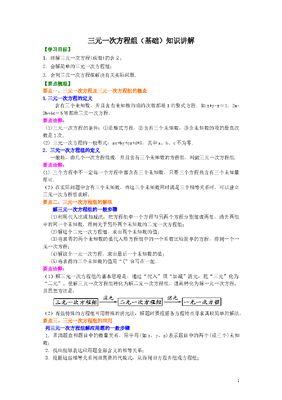 初中7年级(下册)三元一次方程组(基础)知识讲解.doc