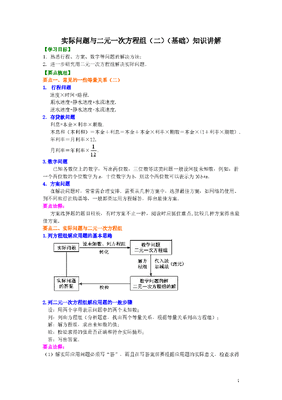 初中7年级(下册)实际问题与二元一次方程组(二)(基础)知识讲解(1).doc