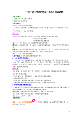 初中7年级(下册)一元一次不等式的解法(提高)知识讲解.doc