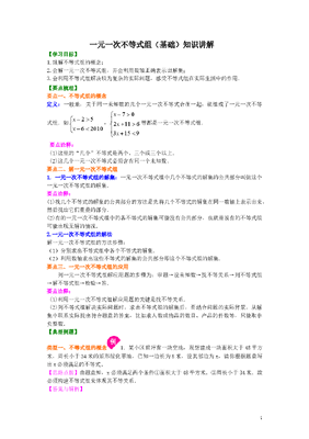 初中7年级(下册)一元一次不等式组(基础)知识讲解.doc