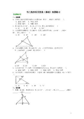 初中8年级(上册)与三角形有关的角(基础)巩固练习 .doc