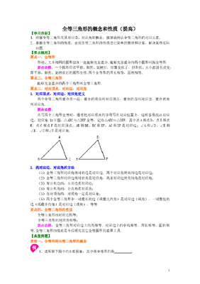 初中8年级(上册)全等三角形的概念和性质(提高)知识讲解.doc