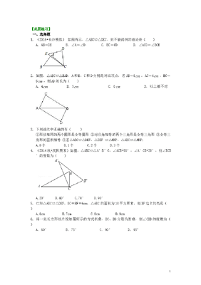 初中8年级(上册)全等三角形的概念和性质(基础)巩固练习.doc