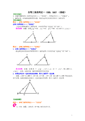 初中8年级(上册)全等三角形判定一(SSS,SAS)(基础)知识讲解.doc